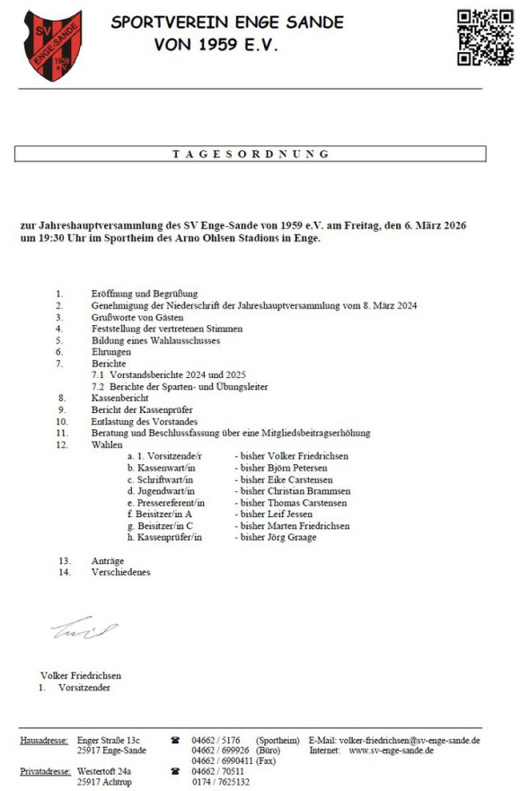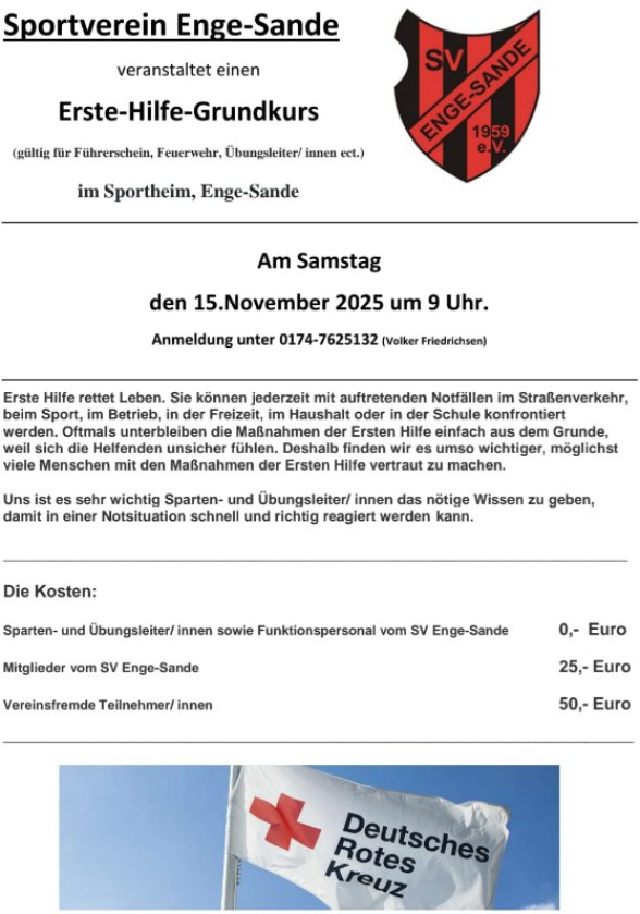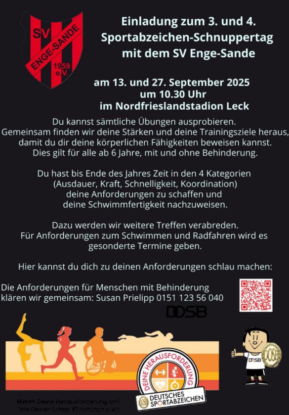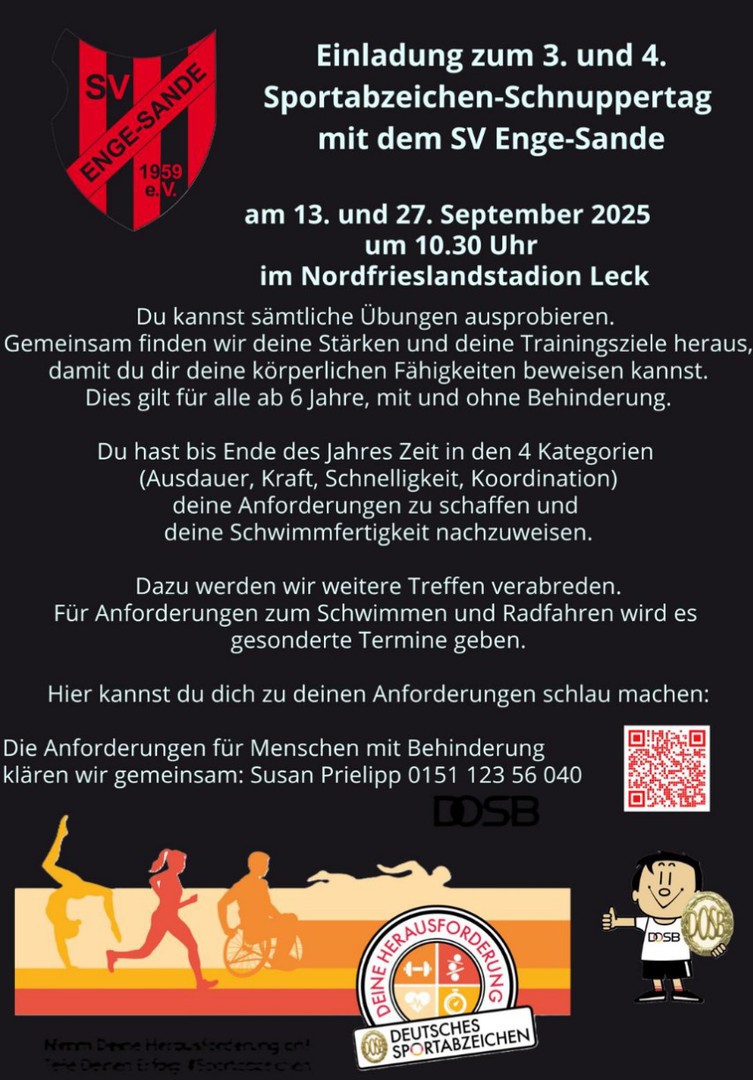 Der SV Enge-Sande ist ein ländlicher Breitensportverein mit einem großen Sportangebot für Jedermann.